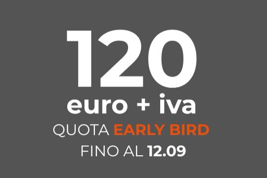 -PREZZO PIENO: € 140,00 + IVA a persona | € 120,00 IVA a persona per 2 o più iscritti